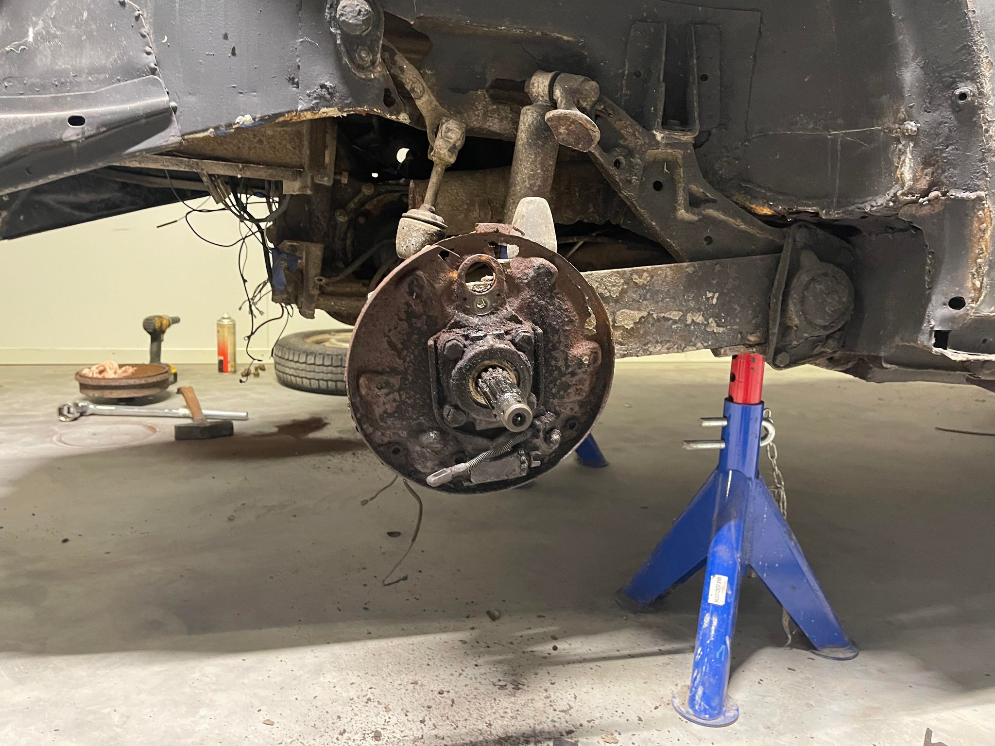 Målet just nu är bara att få den genom besiktning. Bromsarna bak kommer tyvärr inte kunna återanvändas till portalerna ICQ/ac