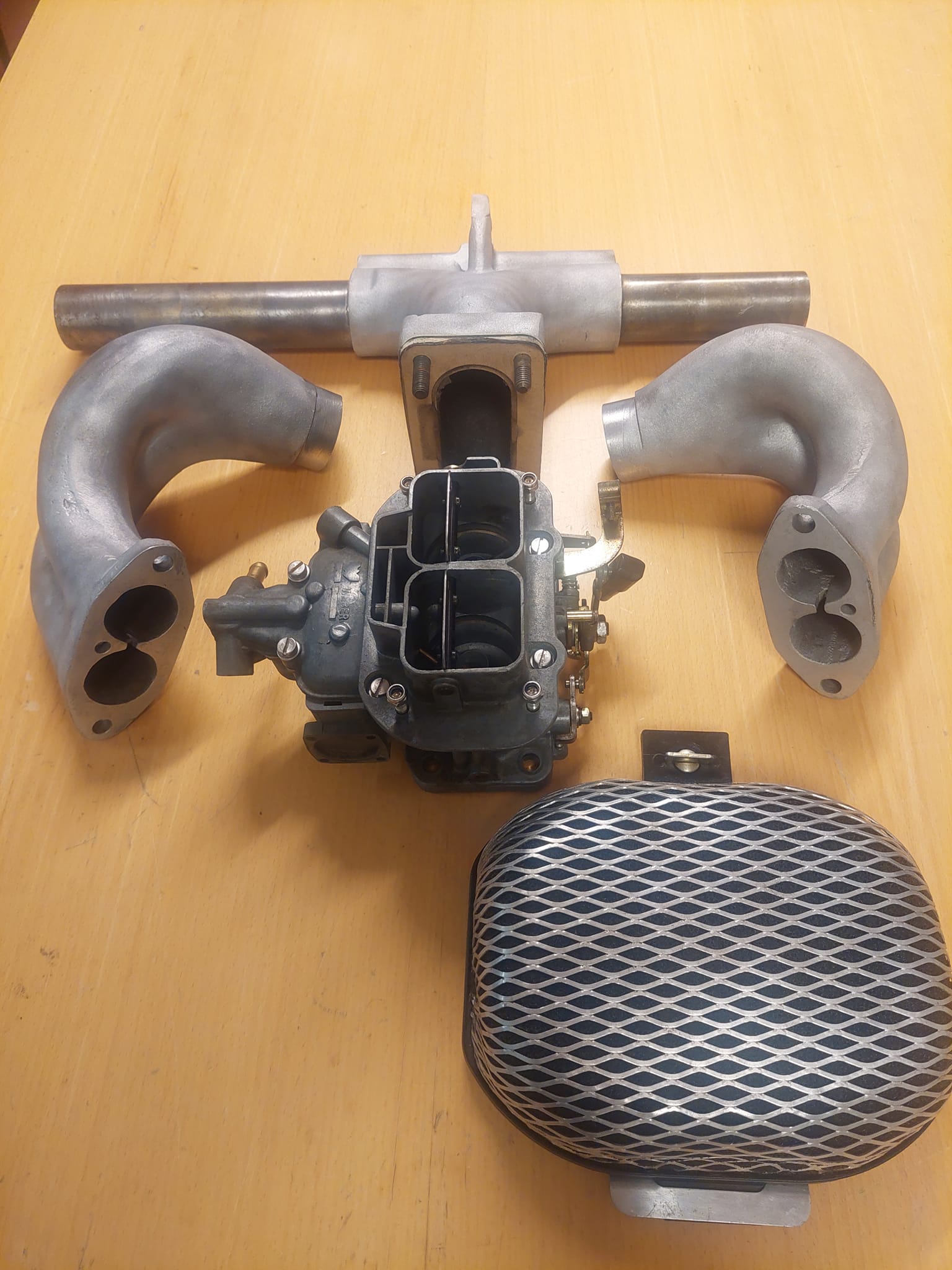Weber 32/36 DGV i fint skick, osäker på bestyckning men har för mig den kommer från någon äldre ford. Manuell choke, inget nämnvärt glapp i spjällaxlar, ultraljudstvättad
