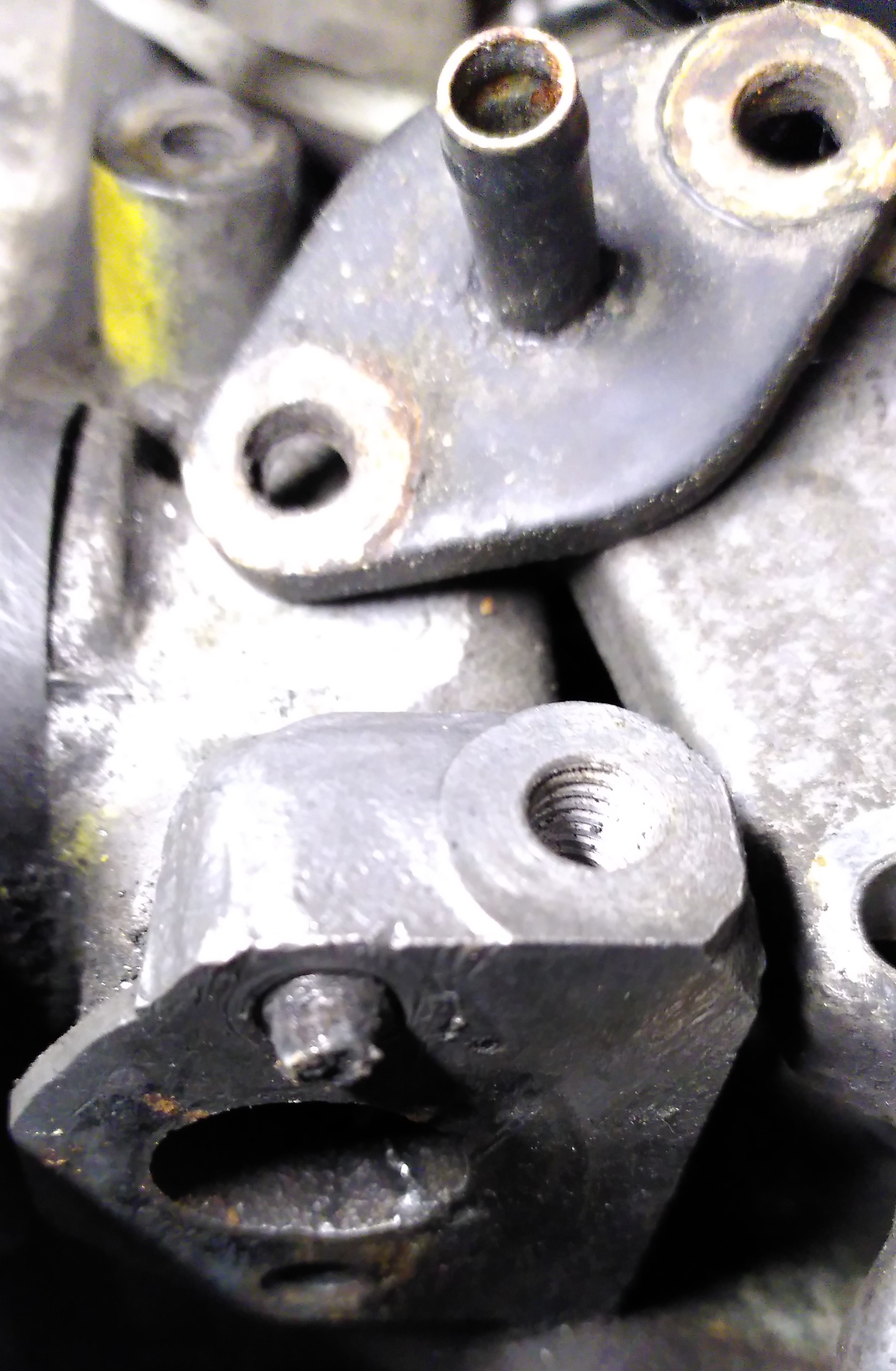 Håller på med min DJ-motor att byta alla kylvattenrör till rostfritt och även alla gummislangar. Har dock lyckats dra av ett bulthuvud vid anslutningen som syns på bilden, den lossade anslutningen ligger bredvid för att visa. Har försökt att svetsa dit en mutter men inte lyckats och det är lite bökigt att komma åt. Svårt att komma åt att borra och gänga om (som jag fick göra på ett annat ställe). Det är dock öppet på 'baksidan' så jag in undrar om det kan vara till nån hjälp? Eller vad hade ni gjort?