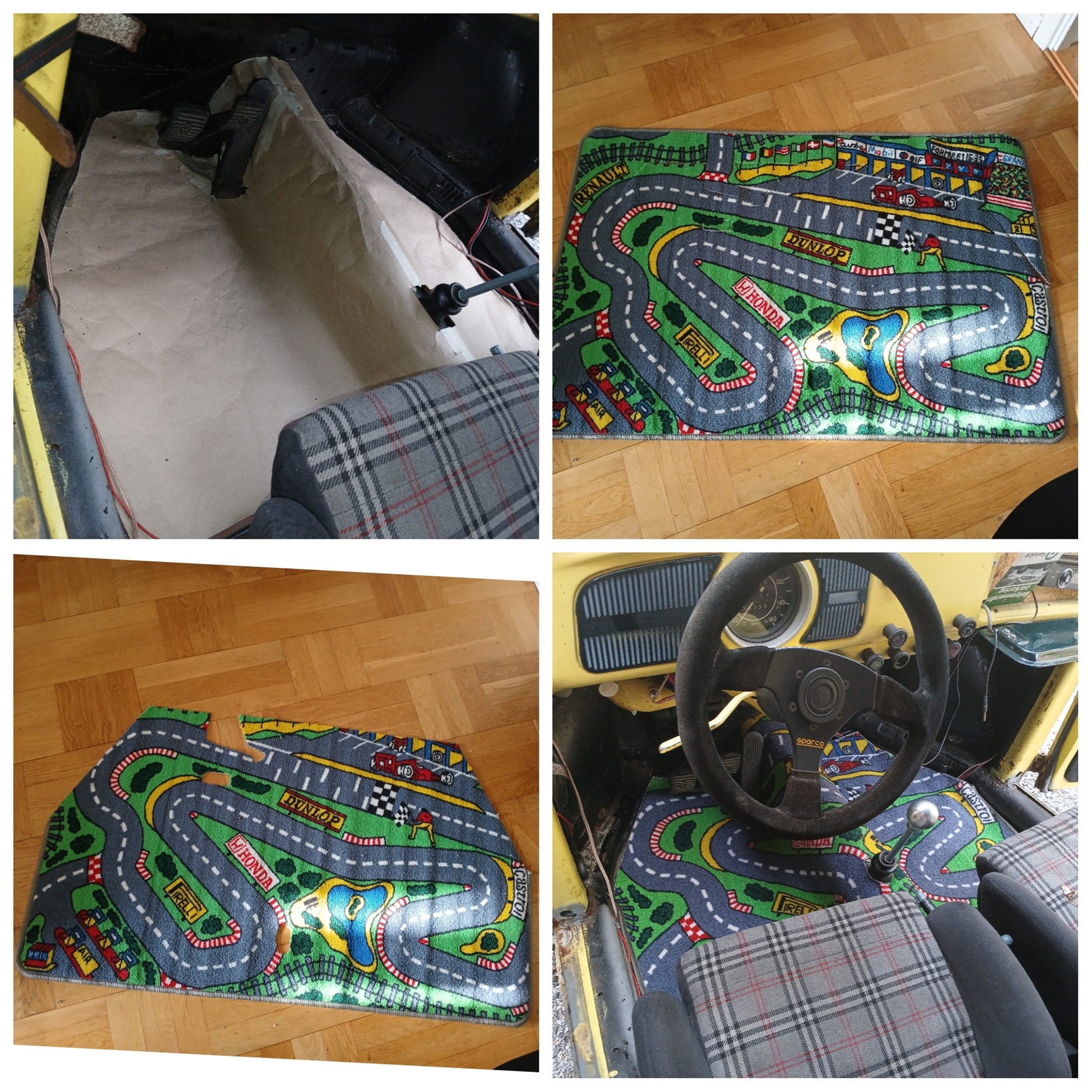 Jag började med att svetsa en del golv samt laga och skruva på skärmar och lyktor sen fixades det lite lyse samt byte bromljuskontakten, sen så lånade jag baksätet från från min 1303s.