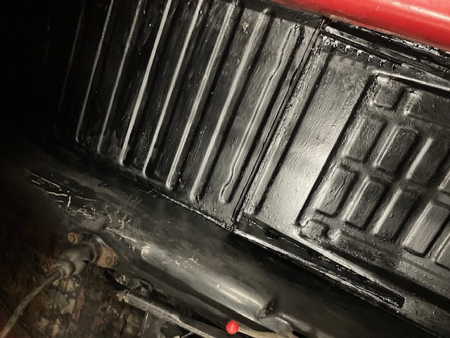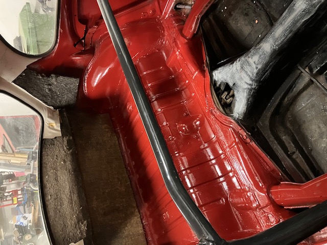 God morron , nåra sena kväldstimmar .. Bort med all ljuddämpning , lett puts . På med Ferrobet ,sen epoxygrund ock Rallysort . Tar sin lilla tid.. Gjorde ordentlig ren stolskenerna .. godt når dom glider lätt . Kom ihåg fjädern med ICQ/ab