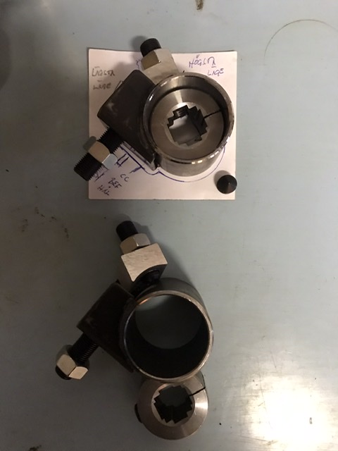 Sedan fick jag svetsa dit klackar så inte svärden fjädrar tillbaka, blev 12 mm och hoppas att jag splinesat svärden i hyfsat rätt läge så hjulen inte hamnar i för spretat läge