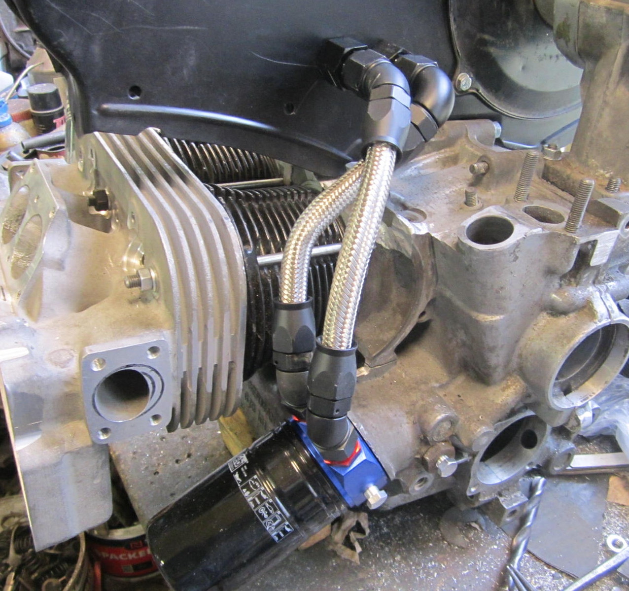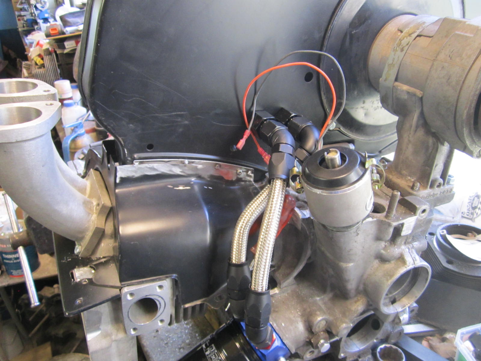 Jag har börjat att förbereda lite så att olika detaljer passar vid den slutliga monteringen. Provar nu typ4 oljekylaren i kåpan. Den ska kopplas in med 3/8 rör som sticker ut på kåpans framsida. Sen AN10 kopplingar och slang ner till oljefilteradaptern.