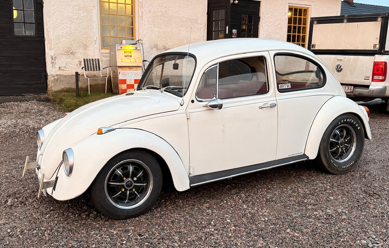 Inköpet av fälgarna blev startskottet för version två och nu var jag mer inne på Cal-look stuk mer än custom. Original bredd på skärmar bak och en kompis svetsade ihop en uppsättning t-bars i rostfritt.