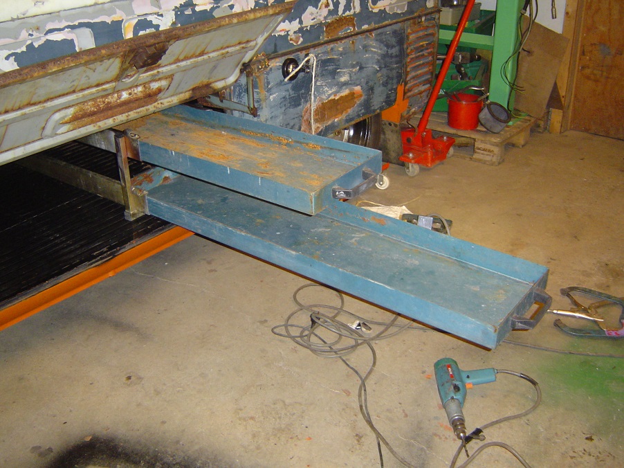 Nämen då jag lät karossen vara channeled, dvs sjunkit ihop av ålder och rost så är det lite trängre i flakutrymmet, så jag fick choppa lastlådekonstruktionen.........
