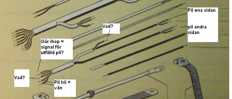 Ser ut på bilden som det går 5 kablar i taknätet... Men 2 går ihop vid instrumentpanelssidan, vilket skulle passa bra med indikeringen för utfälld pil för de går ihop vid lampan. Dvs 2 kablar går till varje pil... Kvar är då en ledare till... Det är den jag undrar om det kan vara takbelysningen som är skarvad uppe i taket och sen går vidare med en ensam ledare... Annars förstår jag inte vad det kan vara...