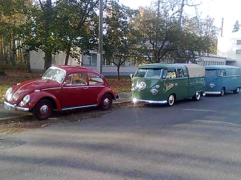 Mitt VW-gäng(de som är i trafik) nytvättade på väg till vinterförvaring..