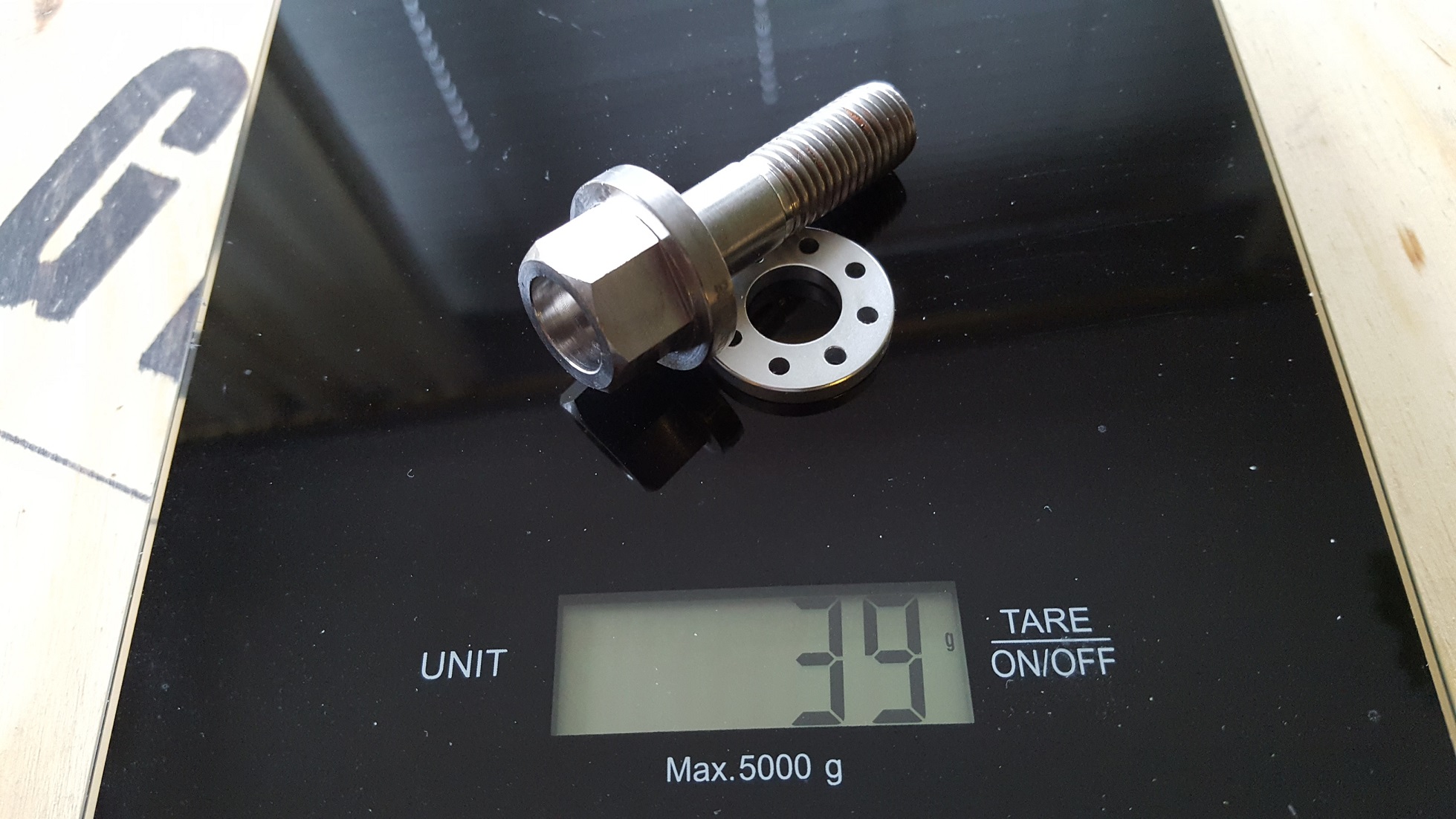 Hjulbultar och brickor i material från framtiden väger inte mycket minsann.. ICQ/ai  ICQ/af
