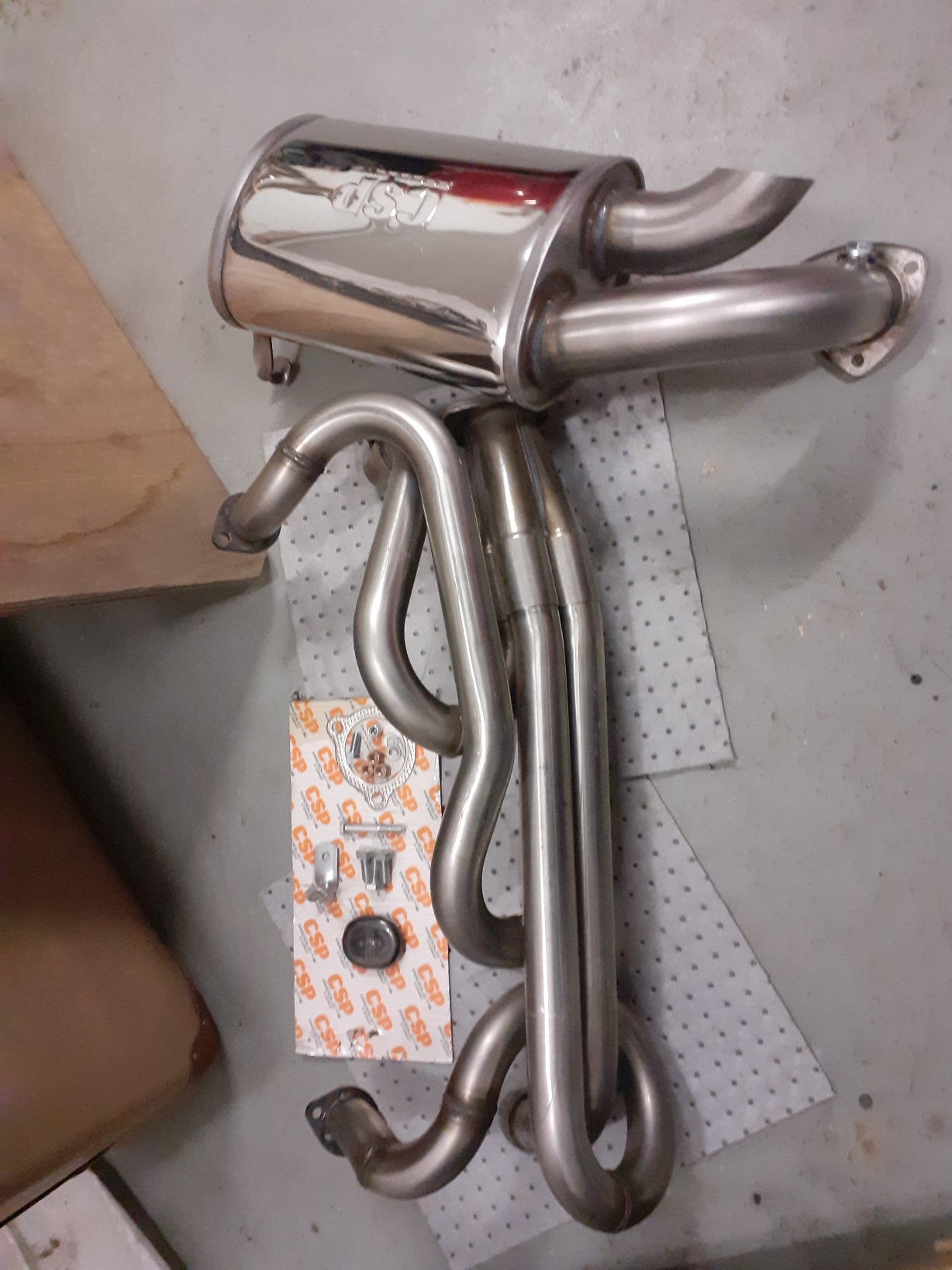 Köpte ett avgas slutrör från en Porsche Boxster som är tänkt att moddas ihop med mitt CSP Python system och sedan bultas på 2054cc motorn som skall i cabben.