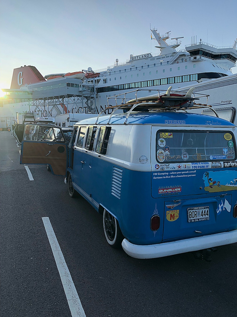 När jag körde mot båten igen såg jag två baybussar rulla in. Dom parkerade på hamnen, såg inte om dom skulle med båten?