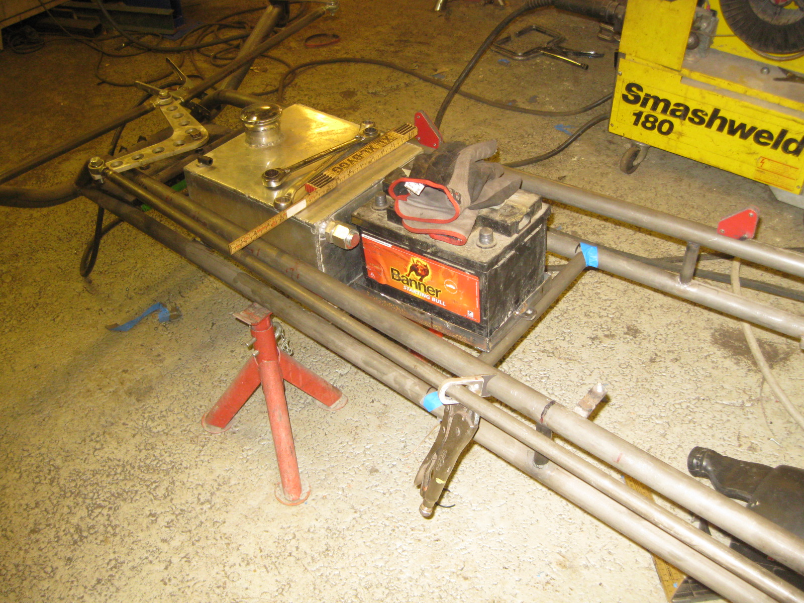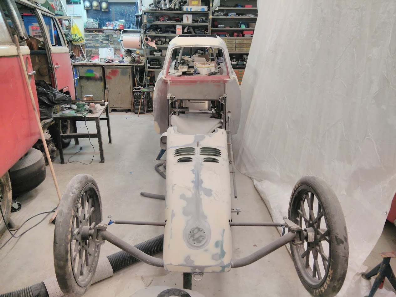 då var man så pass inflyttad i nya verkstan att man kan börja jobba med bilen igen  ICQ/ag  nu närmast är det karossen som skall fixas till för lackering