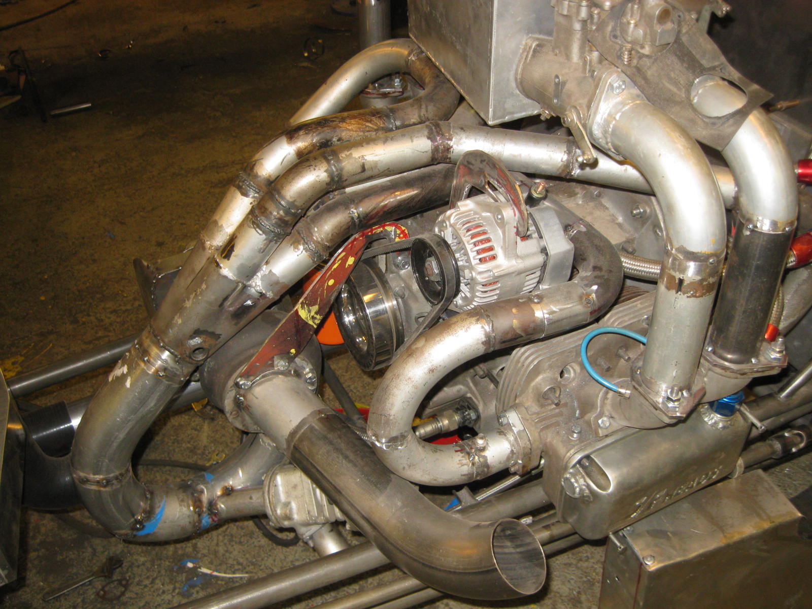 då har race året 2015 börjat, chassit är tömmt för lite ändringar o lackering bla får batteriet flytta framm sen skall nya kopplings systemet som blir hydraliskt ha nya fäst punkter,sen blev det en ny koppling vi tyckte att en 2 skivig 8 tums titan skulle vara bra men inte utan en massa trix förstås stor leken gör nämligen att den inte får plats i addapter hålet så en 2cm tjock distans måste ligga mellan flänsen som görs av centrum delen av vw sväng hjulet o veven för att få den längre in o sen måste det dit en helt ny start med nya fästen till det m.m, nu kör vi  ICQ/af