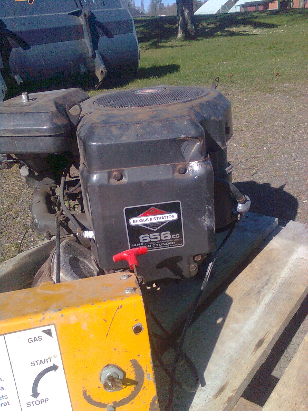 Tjenare, har en 14 hp B&S 656cc twin cylinder med elstart/nyckel ståendes. Har suttit i ett arbetsredskap som sällan använts. Driftstimmar kanske runt 25 timmar totalt.