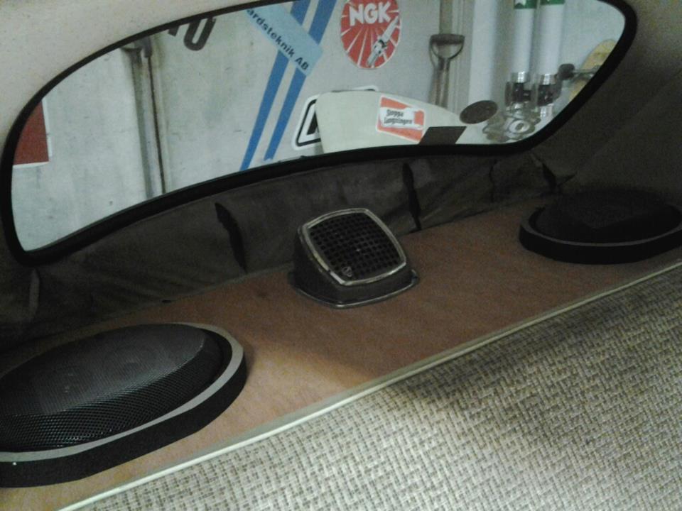 Inredningen är okej Men inget att skryta med stolarna är slitna Men det luktar inte skunk i den iallafall utsleten matta skiten binder bara fukt ända så skrapat och svart målat golv.Sitter en seriös inmonterad sterio i den En Kicker 10a med ett kraftigt steg och i hatthyllan sitter det dubbla kraftiga 6*9or Paneler byggda fram med 5'25or även skrikare som är gömda. i det uppkapade handfacket sitter Mp3an en modern sak Även denna svindyr Spelar som satan.Bilen är bes och funkar fint byggd i vintras Rost finns lite här och var Men inget vrak..Sååå nu till det tråkiga,Finns de någon som har intresse av denna hood?Vill ha en pickis eller buss i byte annars 20-25 papp på kontot kanske???