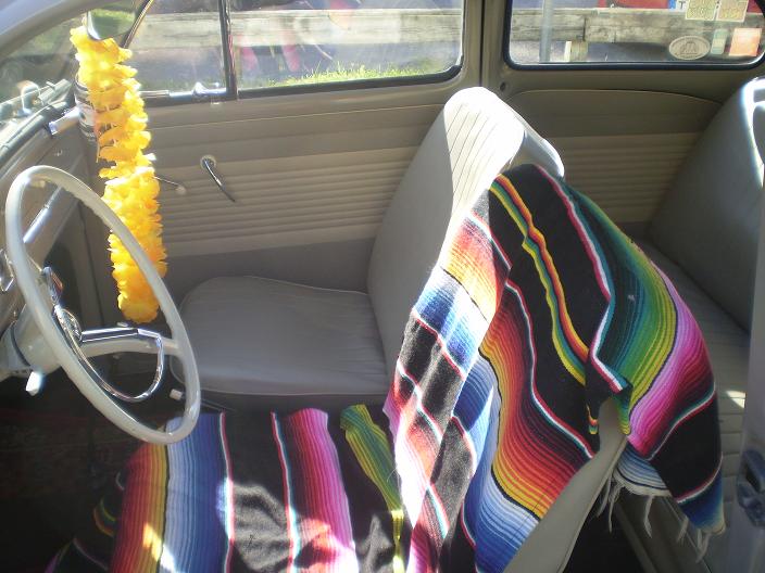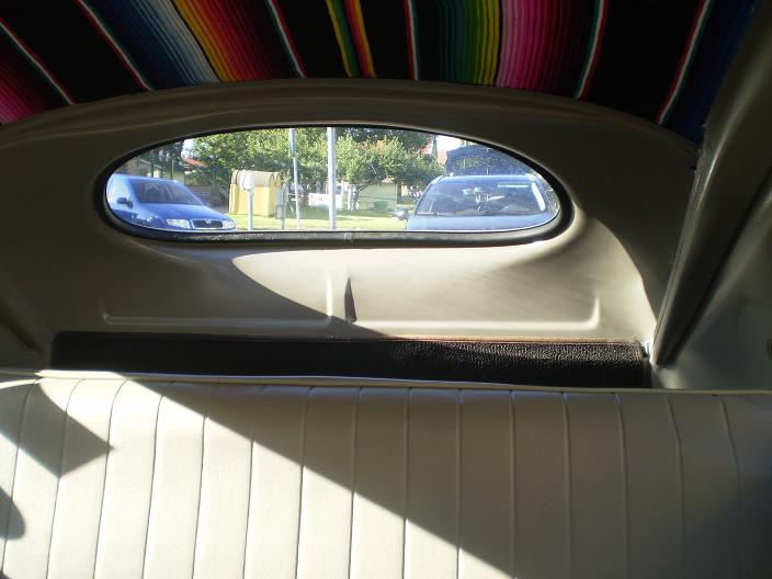 Inredningen monterades för ett år sen. Nya mattor, dörrsidor, stolklädslar och ett egenhändigt gjort innertak av mexfilt.