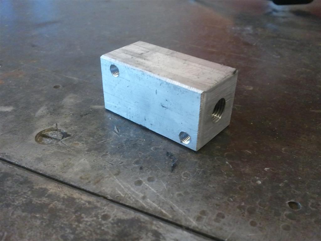 Jag har gjort ett T-stycke i aluminium och gängat med M10x1mm. I ett håll gängas originalgivaren till lampan, i ett annat givaren till mätaren (via en NPT 1/8">M10x1 adapter från mekonomen) och i det tredje hålet en bromsslang med M10x1 nipplar som också skruvas i blocket. Det borde funka.
