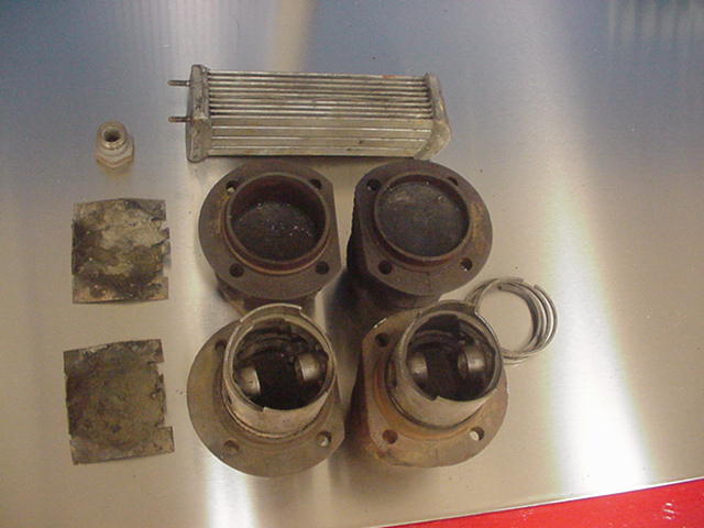 Toppar, ventilkåpor, vevaxel, svänghjul, tryckplatta, svänghjulsbult, oljekylare, cylindrar, kolvar.