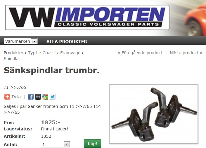 Ni som kör med spindlarna från VWimporten, är ni nöjda ? Ska köpa till min 66a.. har kollat på Vwimporten och Classic up North, de skiljer ju några hundringar men kanske värt att betala de om dom är bättre på Vwimporten! ? Sen en fråga som inte passar här, men hur mycket ska man förlänga svärden om man kör 2 hack sänkning? ICQ/ab