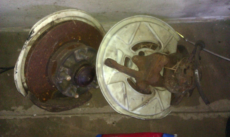 ett komplett porschekit att bygga på en folkvagn. typ 1 eller typ 3. grejera är från en porsche 944. bakvagnen är lika bärarmar som på vw irs som ni ser. alla bromskivor är så gott som nya, bara ytrost. ingen kant. beläggen är också nya. bromssköldarna fram är nybytta. fina bromsok alla 4. tror att spindlarna passar hyffsat på en vw 1303 men troligtvis inte helt. så det får man exprimentera med. vet att jag hittade en sida förut med beskrivning hur man bygger på frambromsarna på en vw typ 3 men hittar den inte nu. vill ha 3000kr för hela kitet inkl drivaxlar. har även ett par porsche fjäderben i kanonskick som passar på vw 1303 till salu om nån är intresserad.