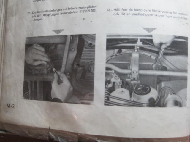 Ur- och inmontering av motor, detaljerad beskrivning med bilder och sprängsskisser