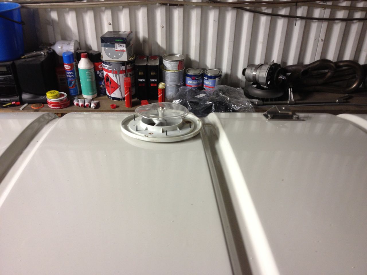Söndagen var vila armarna och leka med barnen som gällde. Smygde med hem täcklocket till tankutrymmet hem för lite pyssel hemma måndag kväll. Fälgarna ska lämnas till lackeraren imorgon och jag tänkte lämna med plåten med. Den är ju vanligtvis avkapad och den avkapade biten ännu mer kapad i för att den originalmonterade bränslevärmaren ska få tillopp till lastutrymmet denna väg förbi tanken.
