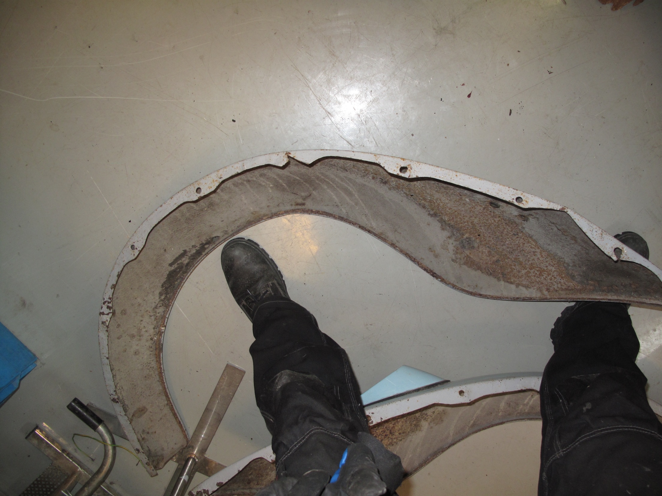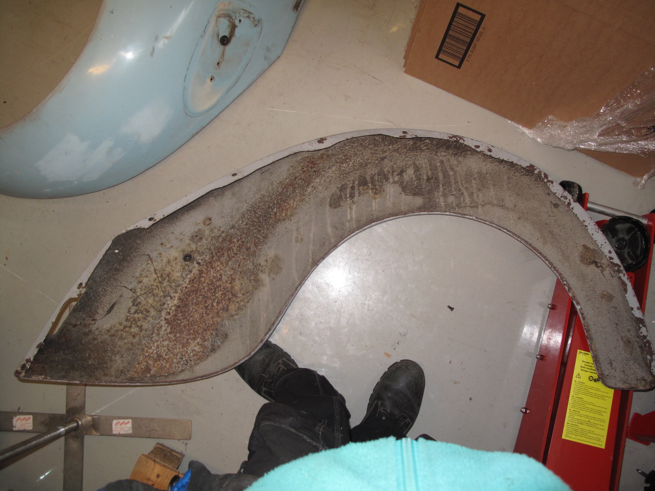 Två skärmar - ska vara bra i plåten enligt den vän som hjälpte mig när jag köpte dem. Inga rosthål. Någon skadad infästning som synes på bild. Årsmodell ska passa -69, så de som har samma infästningar.
