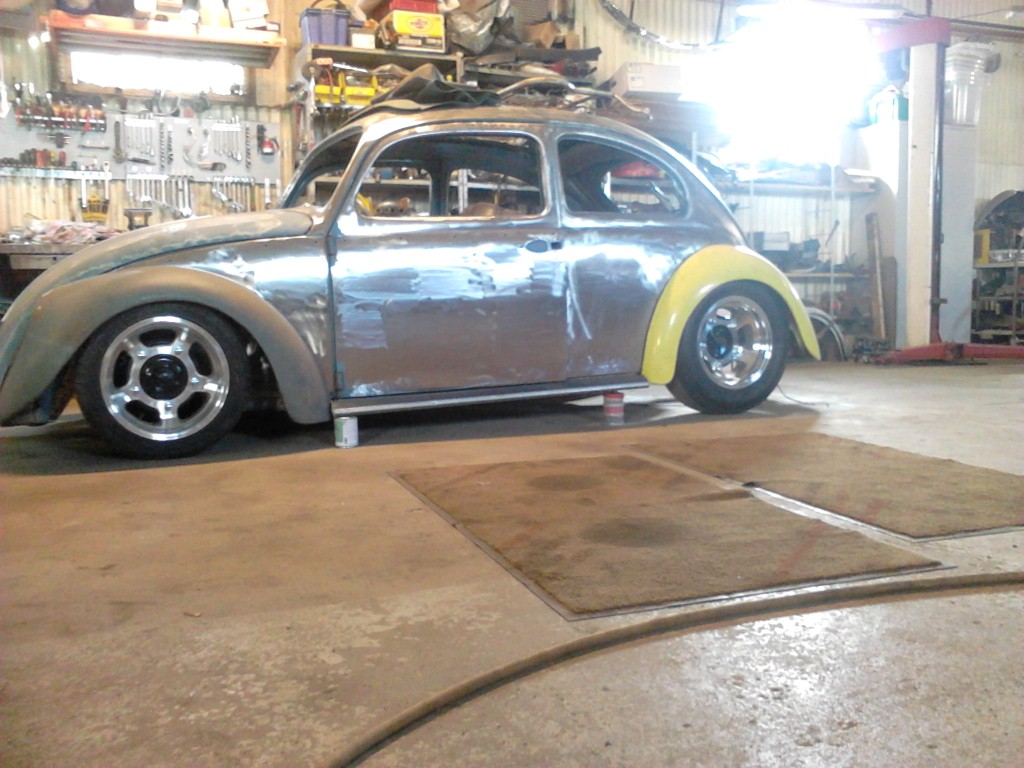 Nu står plattan på egna ben.. "hjul" Har svetsat lite i karossen inget direkt att visa bara att jag svetsat klart lite.