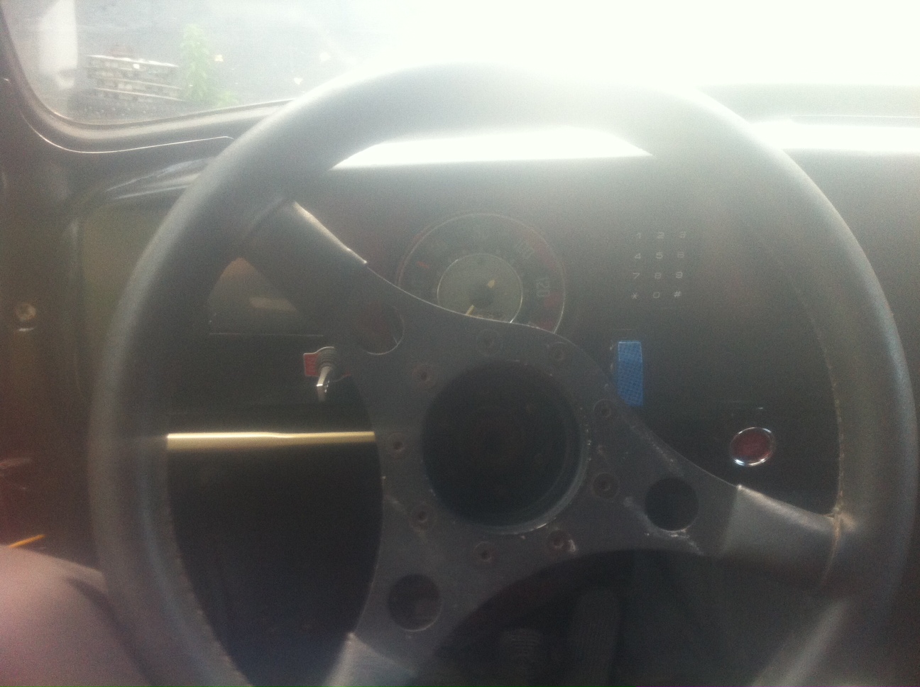 inget tändningslås sitter ett elektriskt kodlås till tändningen och startknapp.