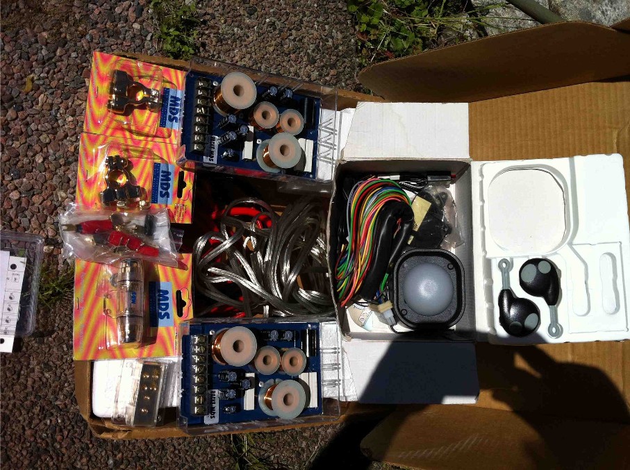 1st Kenwood KAC-728 bridgeable/stereo amplifier, 1 st Kenwood KAC-818 subwooferamplifier, 2 st Backe/MDS filter, Cobra komplett billarm, diverse anslutningar och kablage. Subförstärkaren är testad ca 4 gånger med en subhögtalare det övriga är oanvänt och allt är i nyskick.