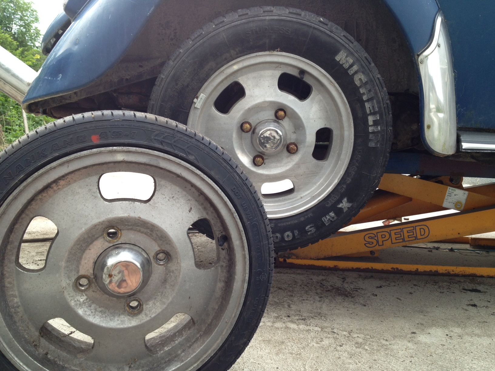 Som vanligt blev det inte som jag tänkt, hur som helst jag inväntar lite hjälp med att sticka av fälgarna ,under tiden så sänker jag bilen fram med drop spindlar mm ,jag fick till det helt ok med lite ride hight kvar typ 1,5 cm till framvagns balken ,det skrapar i om jag ställer mig fram i fronten på bilen men det blir ok,,sliter nog in sig.