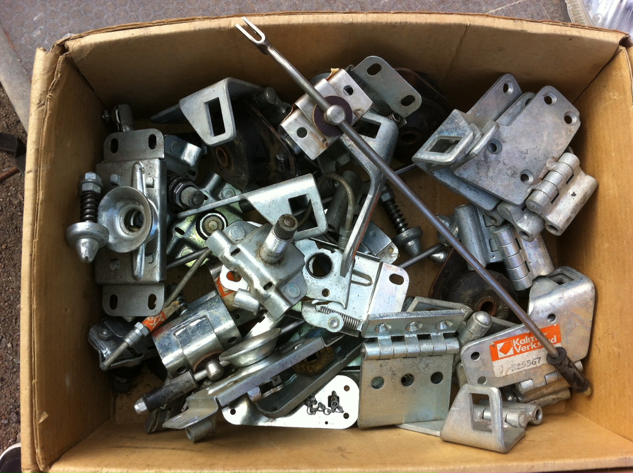 Nån som vet av nån som kan vara intresserad? Mest gångjärn och motorhuvslås, nån fönstervev också.