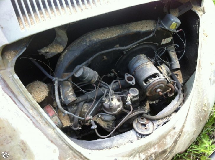 Mycket fin i botten platta och kaross. Garaget där den stått rivs därför är det sågspån på den.