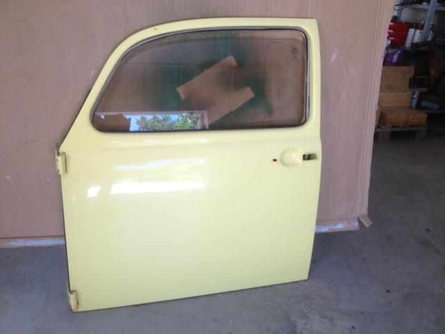 Dörrar, skapligt skick, med tonade one piece window. Sidorutor tonade, bakruta lackad samt original framruta. Medföljer fina rutlister utan spår för kromlist. (Dörrutor och sidorutor har tyvärr reg.nr. graverat). Osäkert årsmodell på dörrarna. 1 500 kr