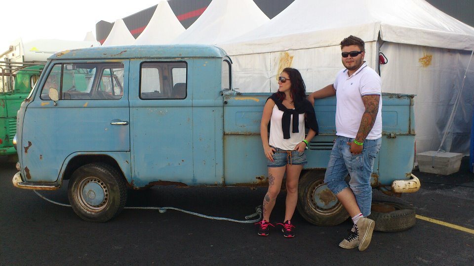 Vit orginalfärg. Det lilla jag har fluktat under bilen så såg den ganska bra ut vad jag minns, gubben som hade den innan mig hade sprutat den undertill varje år.. Tröskar, hörnen bak och golvet båda sidor fram vad jag kan komma på krokig arm! Motorn ligger brevid och gottar till sig, det sitter svarta kofångare på nu, kan smaska fram lite nya bilder imorgon på rost och dyl!