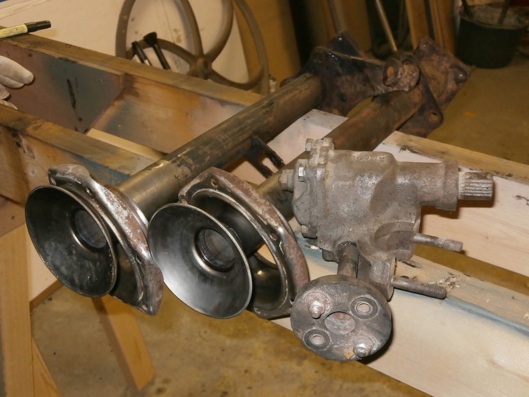 Nu ska bara de "nya" kortare drivaxelrören blästras o målas så jag kan byta och förhoppningsvis få rätt bredd på bakvagnen.