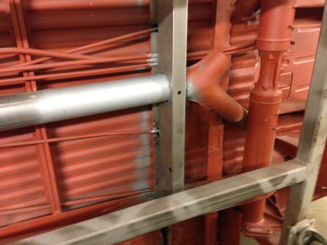 Med båda locken svetsat slipat och primered, var det dax för främre tvärbalken och värmeröret.