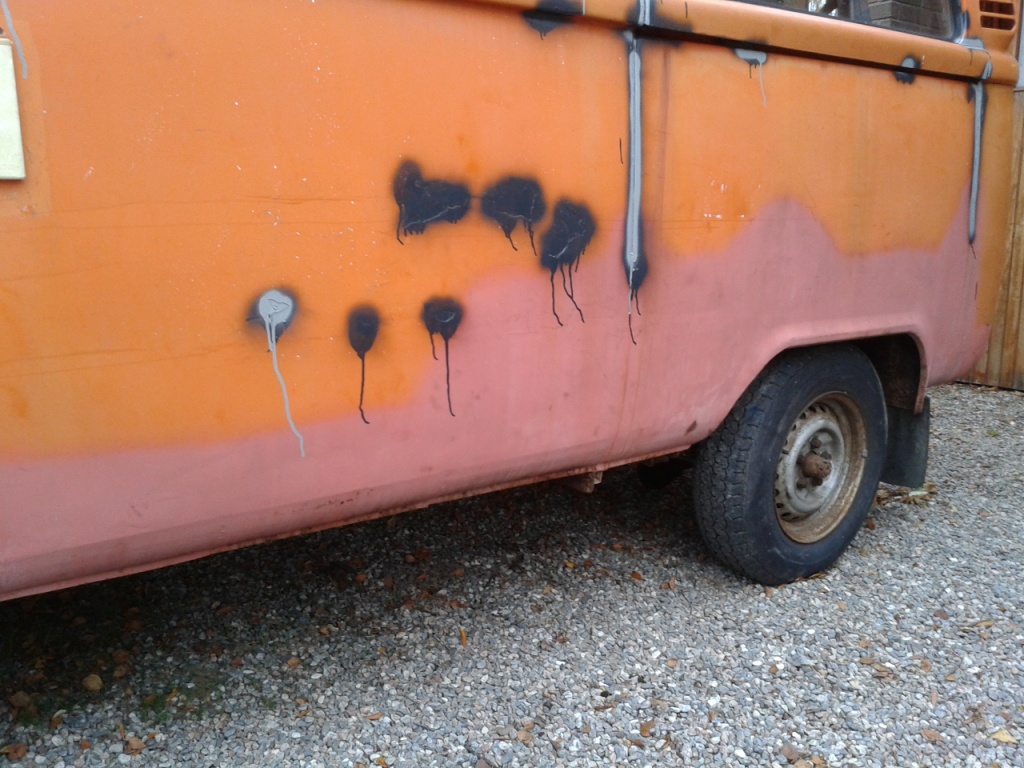 Jag kämpar som sagt mot vinterns antågande. Skulle egentligen vilja blästra och lacka undersidan innan jag rullar in bussen i garaget. Vi får väl se hur det går med det. Problemet är att jag vill spruta epoxiprimer och då gäller det att inte yttertempen blir för låg.