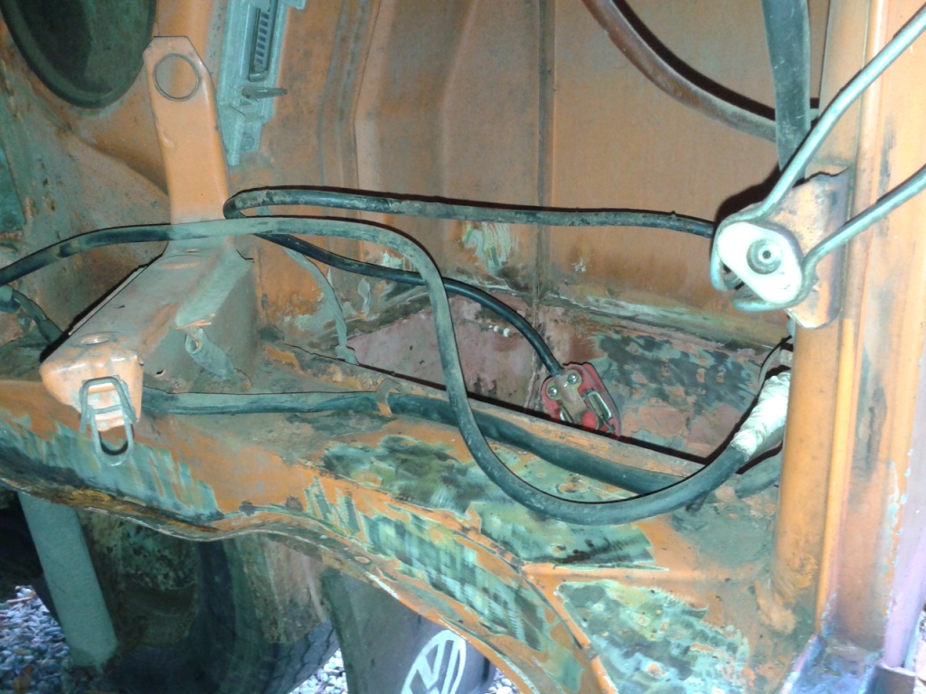 Samma sak på andra sidan. Här ser man även hålen från skylten som talar om hur bilen var levererad från fabrik. Tyvärr är den borta.