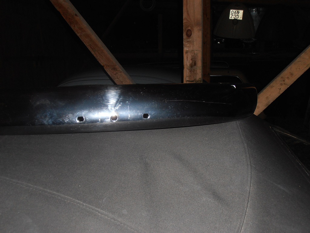Bågar och stötfångarhorn har varit monterade. En ful repa som jag försökt fota och lite porer pga dålig förvaring.