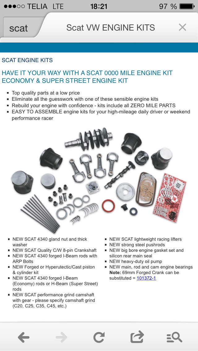 Jag har hittat smidd 4340 vevaxel för ca 2000:- inkl frakt, tex 76mm slag och cheva journaler. Det går ganska snabbt att plocka ihop ett bättre och mer prisvärt kit än såna färdiga budgetpaket.