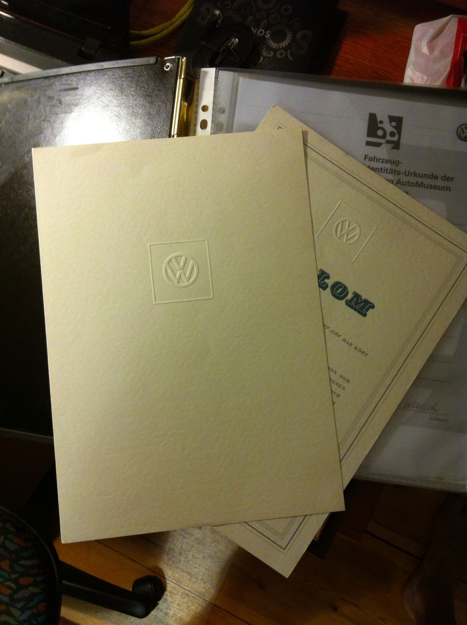 Ligger i en schysst "mapp" med vw loggan i relief.