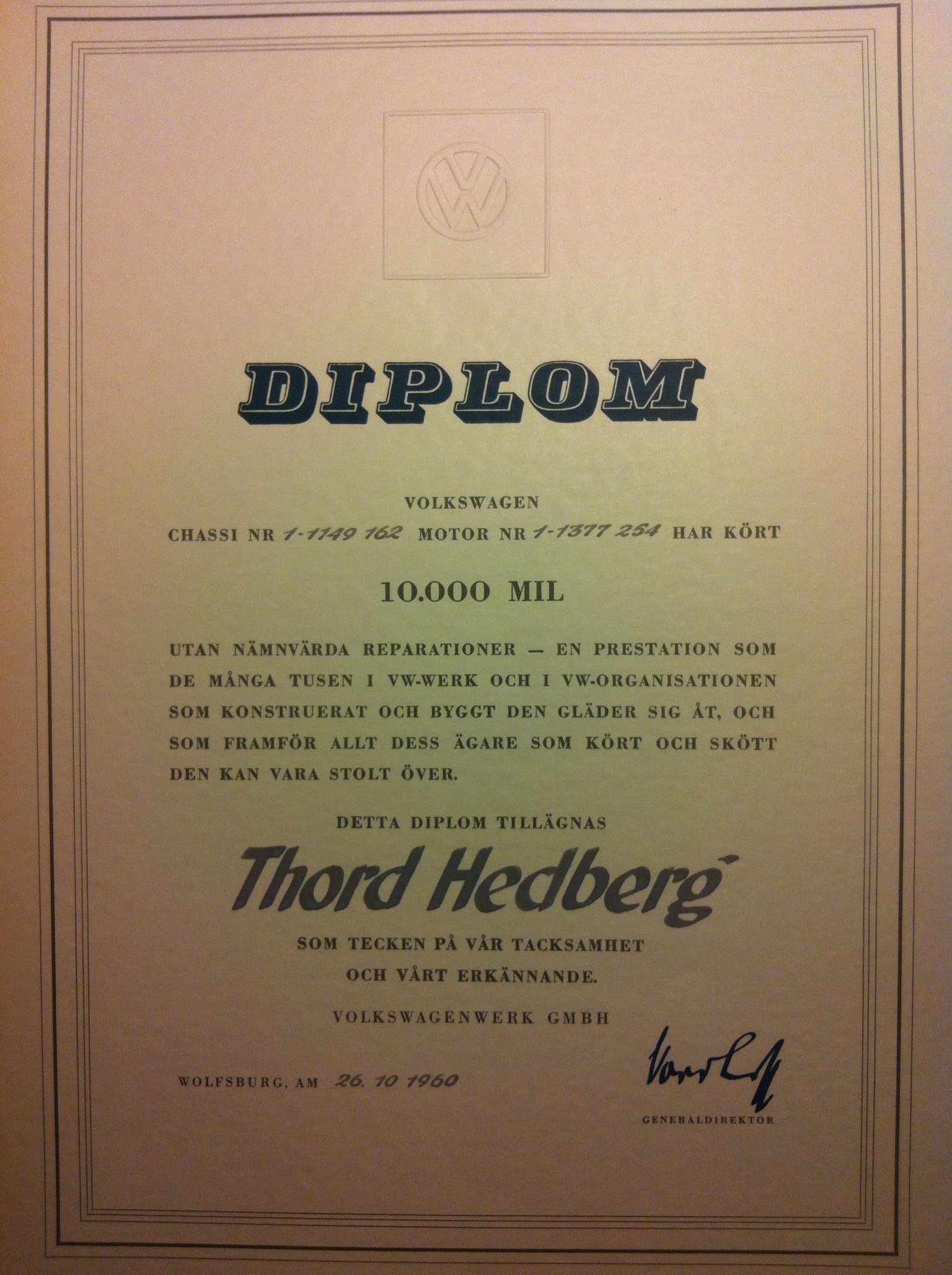 Jodå nog fick man ett Diplom alltid, här är diplomet farsgubben fick.