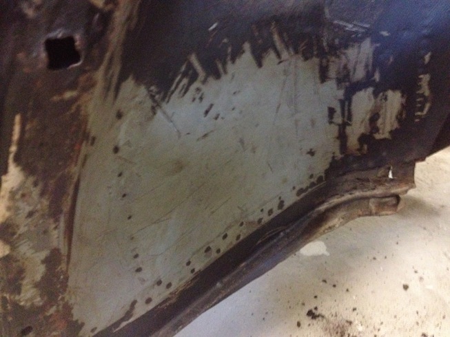 nåra timmer till i garasjet i dag , tvättade rent i hjulhusen på høgersidan . Ser inte alls illa ut när det gjelder rost , men tror bilen har haft en liten krokk på høgersidan fram . Inte så lett att veta hur det borde sett ut ..så om nån har en bra bild på en perfekt høger innerskjärm tas det imot med takk.