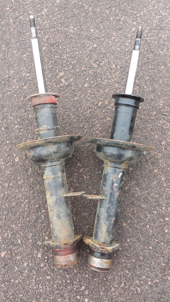 Nya dämpare sitter i. Tror jag har fjädrarna kvar (kapade 2 varv!)