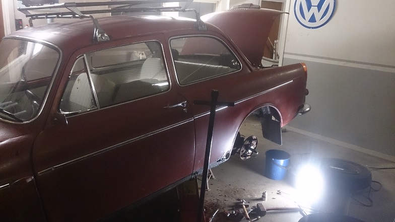Tanken med bilen just nu är att renovera bromsarna och hänga i motorn och ut och åka! Eftersom jag har ju bussen på sida i garaget och måste åka något luftkylt i sommar! Så får det bli en ordentlig renovering sen när bussen är klar!