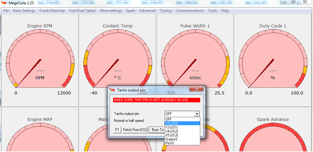 Men du lär kolla i programvaran för MS2 hur det ser ut med utgångarna för tach.