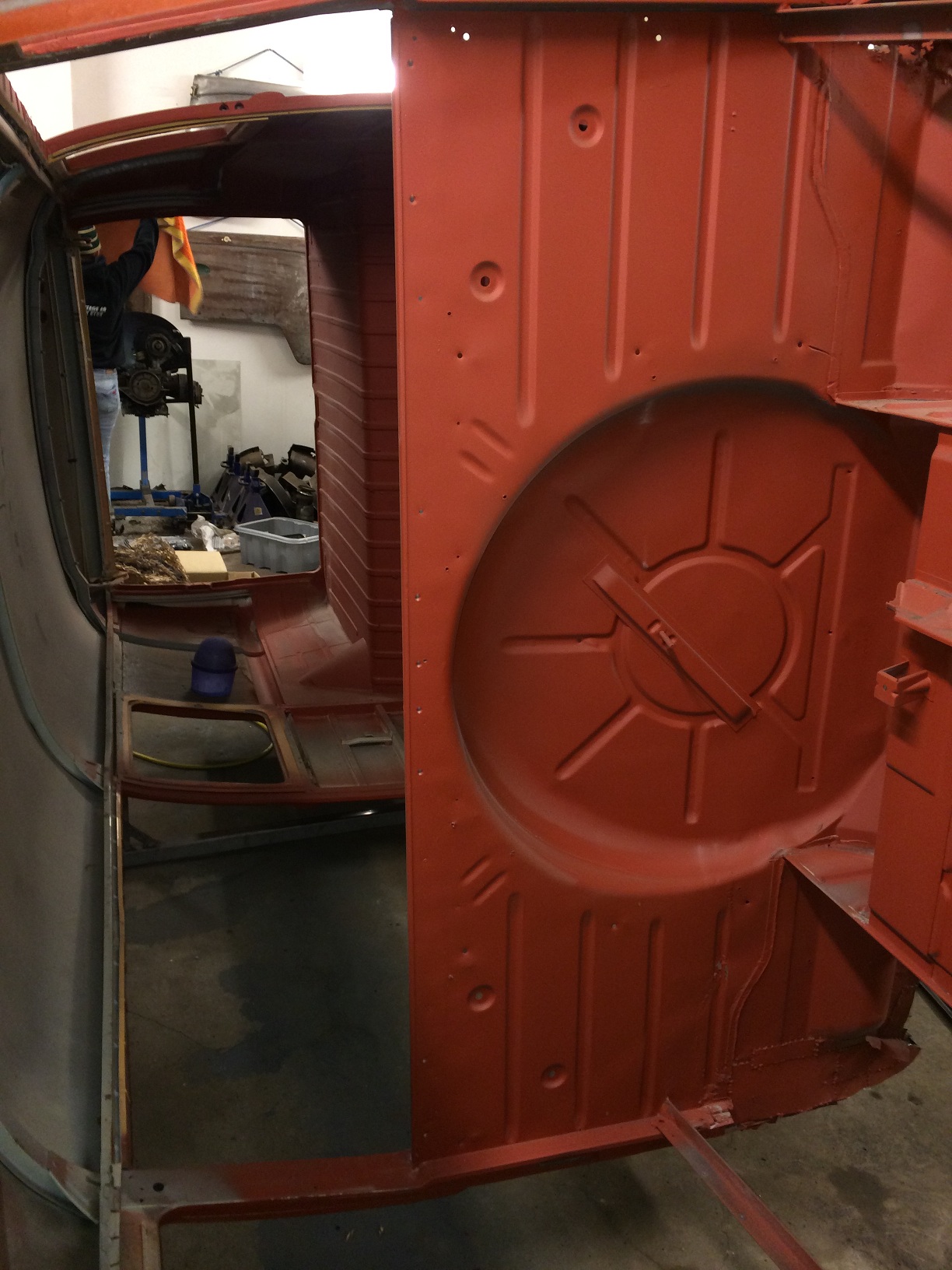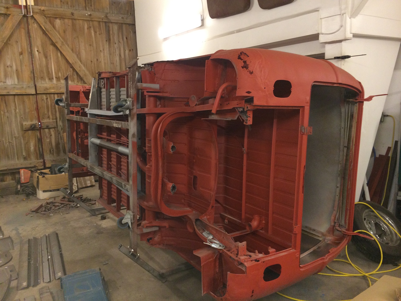 Bussen är blästrad och grundad, nedre delen av fronten och mycket av ramen är redan bytt.