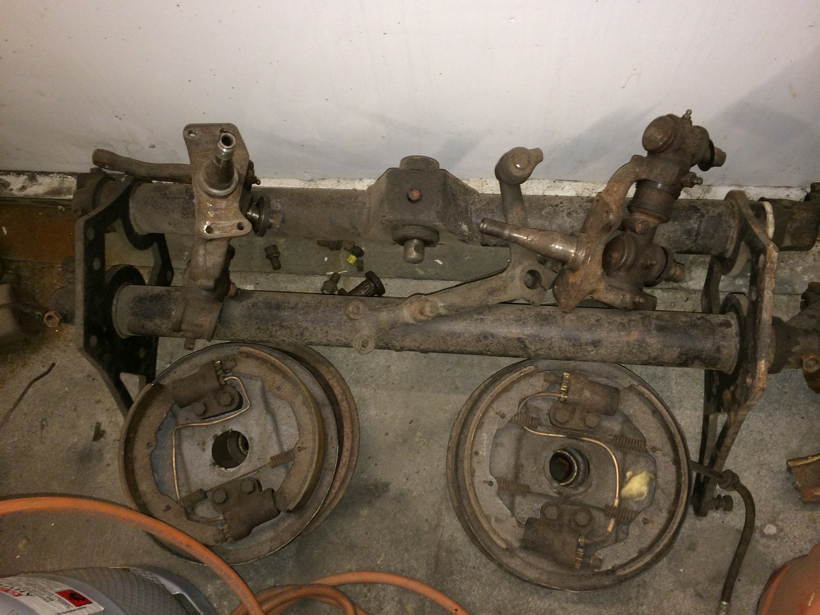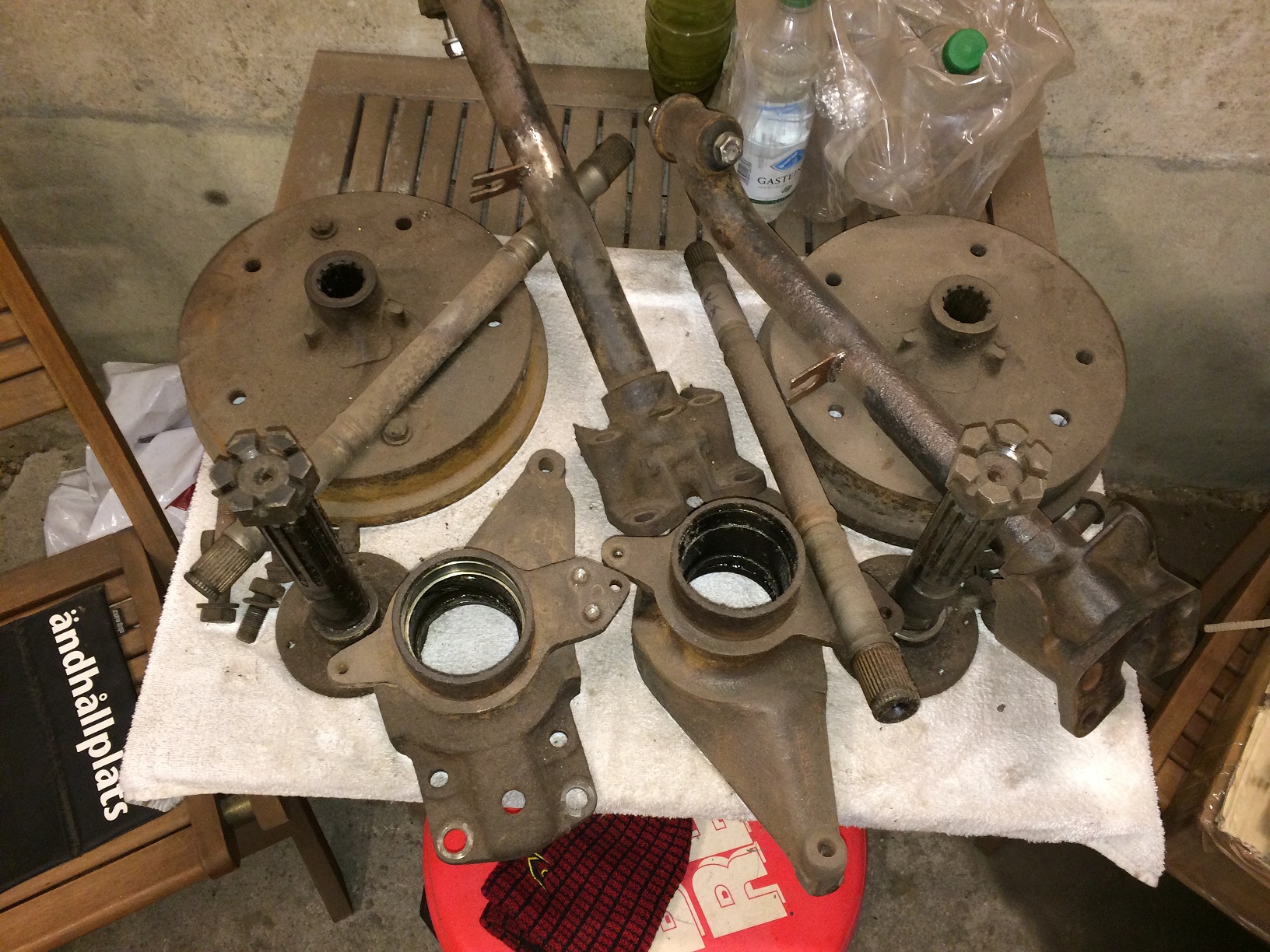 Grubenwerks framvagn och komplett IRS bakvagn från en 68 buss, med nya ramgafflar och bromssköldar. Org bakvagn finns också. Växellåda från en Typ1 1303S. Styrstag till framvagnen saknas, annars komplett med spindlar och bromsat, osv.
