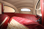Sen röda skinpajjen som är.... ÖVERALLT är inte från fabriken. Dock var det inte ovanligt med överdragsklädsel, men jag har aldrig sett sådan upp mot taket å ovanför sidopanelerna.