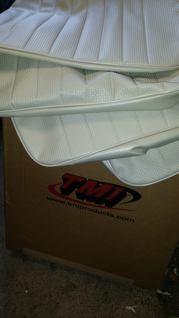 TMI T2 68-73 front bucket seat covers, Basket weave, "Off White".